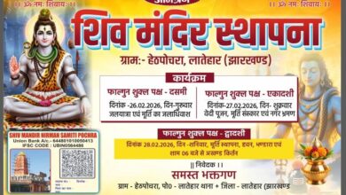 लातेहार। सदर प्रखंड के हेठपोचरा ग्राम मे स्थित शिव मंदिर में प्राण प्रतिष्ठा सह आंशिक पुनर्निर्माण कार्य पूर्ण होने के…