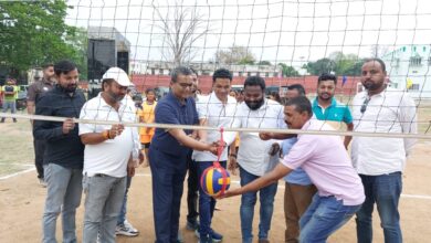 जिला स्तरीय बालक बालिका वॉलीबॉल प्रतियोगिता का उदघाटन, बारिस के कारण मैच धुला