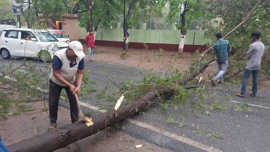 बारिश में सर्किट हाउस के पास गिरा पेड़