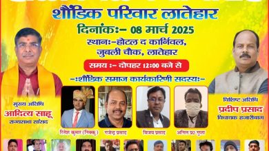 लातेहार। शौंडिक समाज के तत्वावधान में आगामी आठ मार्च को होली मिलन समारोह का आयोजन किया जायेगा. यह आयोजन शहर…