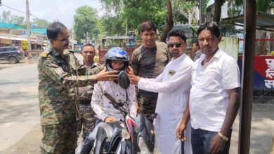 मुस्लिम समाज ने बाइक सवारों के बीच हेलमेट बांटे