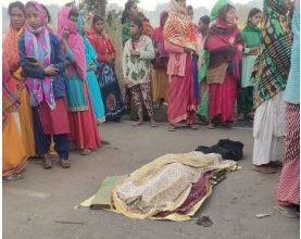 हाईवा के चपेट में आने से बाइक सवार युवक की मौत, विरोध में सड़क जाम