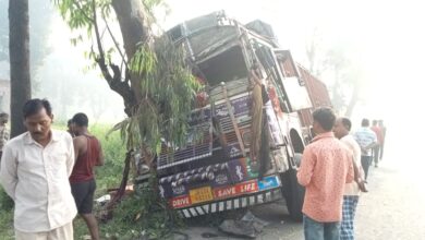 कोयला लदा ट्रक पेड़ से टकराया, चालक गंभीर रूप से घायल