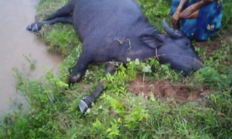 इसी दौरान उनकी एक भैंस इसकी चपेट में आ गई और मौके पर ही उसकी मौत हो गई। ग्रामीणों ने बताया कि घटना के समय क्षेत्र में तेज बारिश हो रही थी और लोग घरों के अंदर शरण लिए हुए थे। हालांकि, सरजू सिंह को किसी प्रकार की शारीरिक क्षति नहीं पहुंची, लेकिन भैंस की मौत से उन्हें भारी आर्थिक नुकसान झेलना पड़ा है।