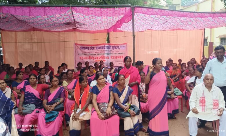 झारखंड प्रदेश आंगनबाड़ी वर्कर्स यूनियन ने दिया दिवसीय धरना