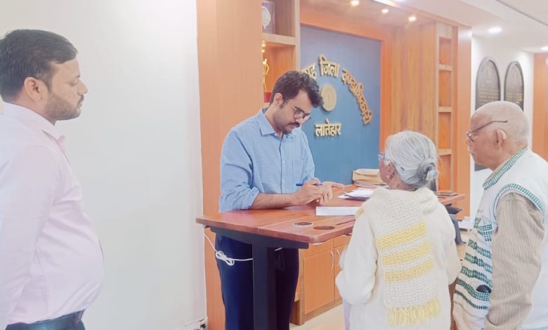 लातेहार। मंगलवार को समाहरणालय में आयोजित साप्‍ताहिक जन शिकायत निवारण में उपायुक्‍त उत्‍कर्ष गुप्‍ता ने जिले के सुदूरवर्ती क्षेत्रों के ग्रामीणों की समस्‍याओ को सुना एवं उसके निराकरण के लिए संबंधित अधिकारियों को अग्रसारित किया. जन शिकायत निवारण में कुल 11 आवेदन प्राप्त हुए.
