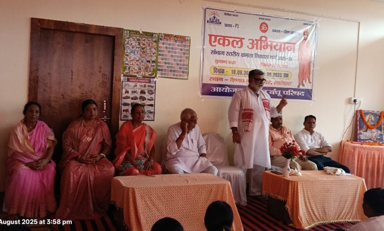 लातेहार। एकल अभियान, संभाग दक्षिण झारखंड का सात दिवसीय क्षमता विकास वर्ग अंचल लातेहार के श्री वैष्णव मंदिर में 19 अगस्त को प्रारंभ हुआ. इसका उद्घाटन डीवीसी के सीएसआर के सहायक प्रबन्धक संजीव कुमार और डॉ ललन कुमार शर्मा, राष्ट्रीय संगठन महामंत्री सह एकल अभियान के केंद्रीय अभियान प्रमुख ने द्वीप प्रज्वलन कर किया.