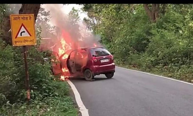 चलती कार में लगी आग, कूद कर बचाई जान
