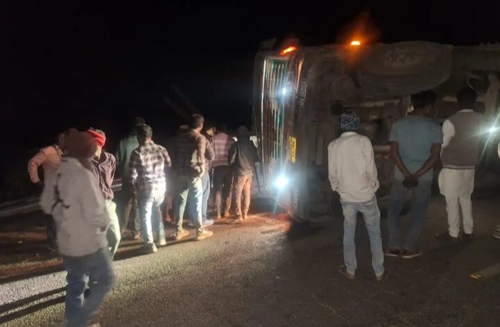 ट्रक कार के ऊपर पलटा, एक पति की मौत, पत्नी गंभीर रूप से घायल