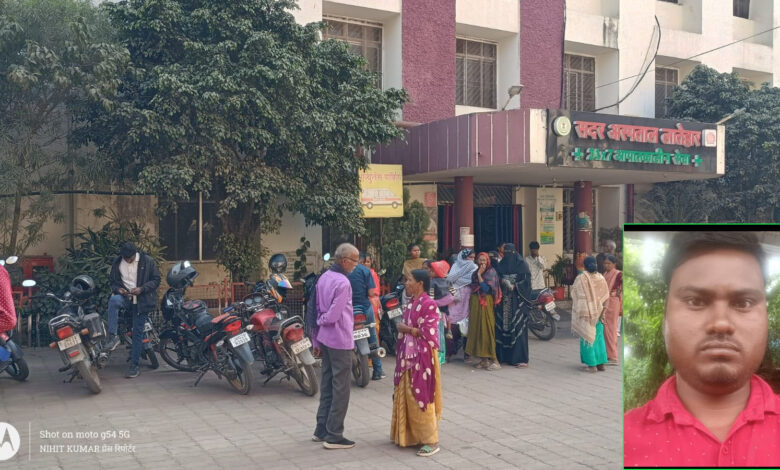 अस्पताल में पहुंचे परिजन, मृतक का फाइल फोटो (इनसेट में)