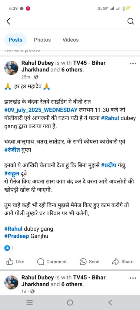 फूलबसिया के बाद अब टोरी कोल साइडिंग में राहुल दुबे गैंग ने आगजनी व फायरिंग की