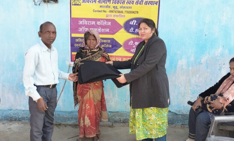 लातेहार। पड़ रही कड़ाके की ठंड को देखते हुए अविराम कॉलेज ऑफ फार्मेसी एंड नर्सिंग हुटाप ,चंदवा) ग्राम लुकईया में जरूरतमंदों के बीच कंबलों का वितरण किया. इस अवसर पर कॉलेज की फार्मेसी और नर्सिंग शाखाओं के प्राचार्य विशेष रूप से उपस्थित रहे और उन्होंने अपने हाथों से ग्रामीणों को कंबल प्रदान किए. कंबल वितरण का उद्देश्य आम ग्रामीणों को इस कड़ाके की ठंड से प्रभावित गरीब और असहाय लोगों को राहत पहुँचाना है. इस अवसर पर अविराम कॉलेज ऑफ फार्मेसी और नर्सिंग के प्राचार्यगण एवं अन्य स्टाफ उपस्थिति थे. कॉलेज प्रबंधन ने इस पहल पर कहा कि वे भविष्य में भी इस प्रकार के सामाजिक कार्यों में सक्रिय रूप से भाग लेते रहेंगे.ग्रामीणों ने कॉलेज के इस मानवीय कार्य की सराहना की और उन्हें धन्यवाद दिया.