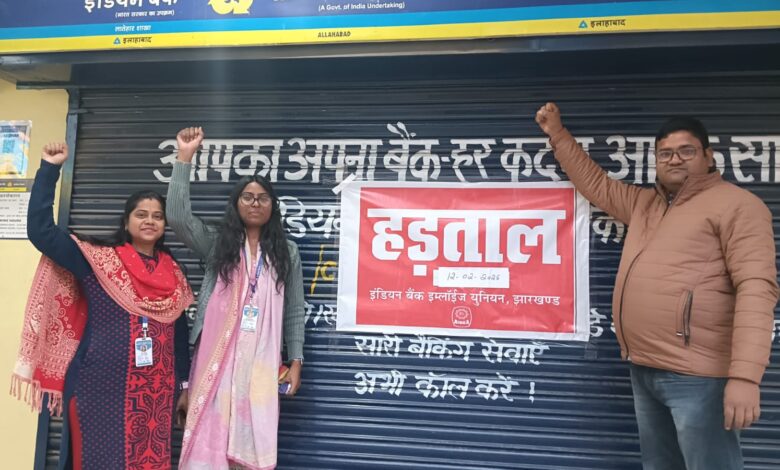 राष्ट्रव्यापी हड़ताल में बंद रहे बैंक, कर्मियों ने नारेबाजी की