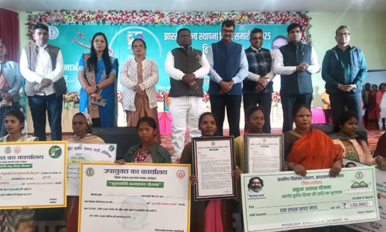लातेहार। धरती आबा भगवान बिरसा मुंडा की 150वीं जयंती एवं झारखंड राज्य स्थापना दिवस के रजत जयंती के अवसर पर 15 नवंबर को टाउन हॉल, लातेहार में विकास मेला समेंत कई कार्यक्रमों का आयोजन किया गया. कार्यक्रमों का शुभारंभ विधायक मनिका रामचंद्र सिंह, उपायुक्त उत्कर्ष गुप्ता, पुलिस अधीक्षक कुमार गौरव, वन प्रमंडल पदाधिकारी प्रवेश अग्रवाल एवं जिला परिषद अध्यक्ष पूनम देवी समेत उपस्थित जनप्रतिनिधियों व अधिकारियों ने संयुक्त रूप से दीप प्रज्वलित कर किया.