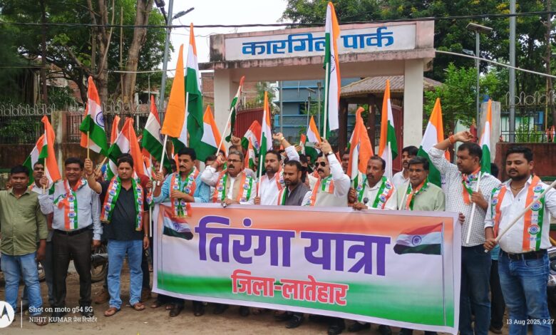 तिरंगा यात्रा कारगिल पार्क से लातेहार की मुख्य सड़क से होते हुए समहारणालय मोड़ तक गयी. इस दौरान वातावरण देशभक्ति के नारों से गुंजायमान हो गया. यात्रा के आगे आगे ध्‍वनि विस्‍तारक यंत्र में देशभक्ति गीत बज रहे थे.