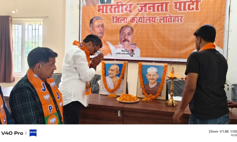लातेहार। महात्मा गांधी एवं भारत के पूर्व प्रधानमंत्री लाल बहादुर शास्त्री की जयंती पर भाजपा जिला कार्यालय, लातेहार में कार्यक्रम आयोजित किया गया। कार्यक्रम की अध्यक्षता भाजपा जिला अध्यक्ष पंकज सिंह ने की। इस अवसर पर दोनों महान नेताओं के चित्र पर पुष्पांजलि और माल्यार्पण कर उन्हें श्रद्धापूर्वक नमन किया गया। कार्यक्रम में भाजपा जिला अध्यक्ष पंकज सिंह कहा कि गांधी जी के सत्य, अहिंसा और स्वच्छता के संदेश तथा शास्त्री जी के “जय जवान, जय किसान” के नारे को आज भी प्रासंगिक बताया। उन्होंने कहा कि दोनों महापुरुषों का जीवन त्याग, सादगी और देश सेवा की अनूठी मिसाल है। इस मौके पर भाजपा जिला महामंत्री बंसी यादव, विष्णु देव प्रसाद गुप्ता, मन की बात संयोजक राजीव रंजन पांडे, नगर मंडल अध्यक्ष विवेक चंद्रवंशी, ग्रामीण मंडल अध्यक्ष प्रमोद कुमार, नगर मंडल महामंत्री उत्तम कुमार, जिला कार्यसमिति सदस्य आनंद सिंह सहित कई कार्यकर्ता और गणमान्य लोग उपस्थित रहे। कार्यक्रम के अंत में जिला अध्यक्ष पंकज सिंह ने सभी से आह्वान किया कि हमें महात्मा गांधी और लाल बहादुर शास्त्री के आदर्शों को जीवन में आत्मसात कर देश और समाज की सेवा के लिए कार्य करना चाहिए।