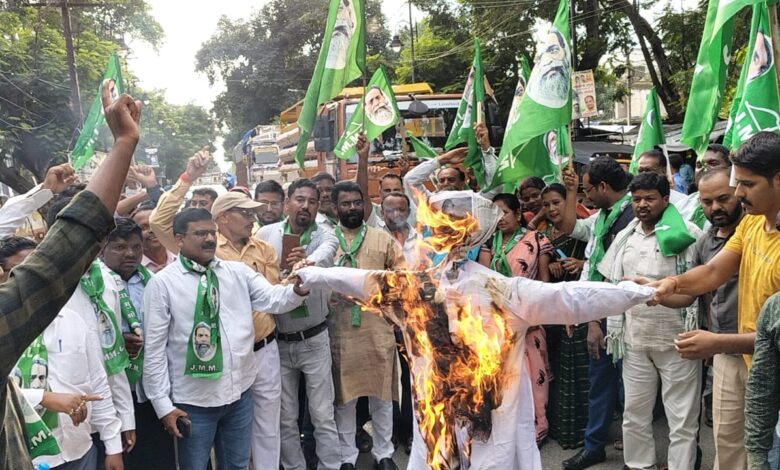 काफी संख्या में झामुमो नेता व कार्यकर्ताओ ने पुतला दहन कार्यक्रम में भाग लिया
