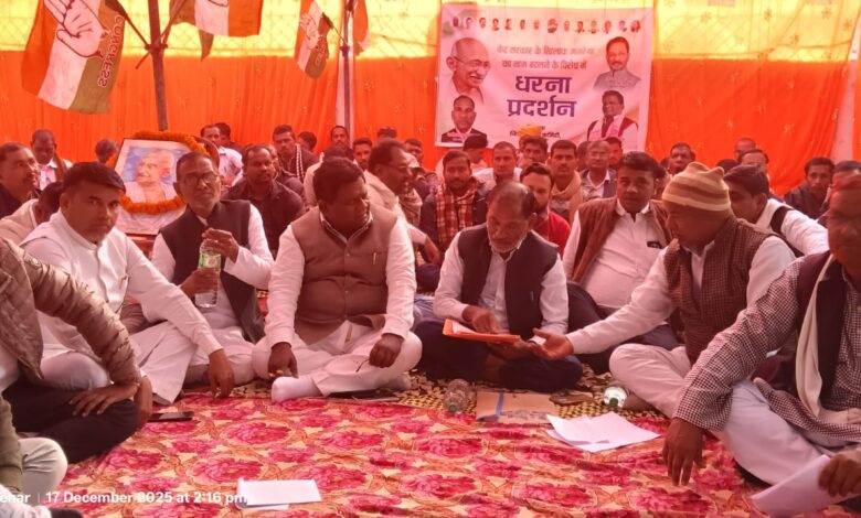 इसका मुख्य उदेश्य मजदूरों का हक मार कर पूंजीपतियों को सौंपना है. धरना की अध्यक्षता करते हुए जिला अध्यक्ष कामेश्वर यादव ने कहा कि भाजपा मनरेगा का नाम बदल कर महात्मा गांधी के नाम को मिटाने का प्रयास कर रही है. जबकि गांधी जी तो हर एक भारतवासी के दिलों में बसते हैं. कार्यक्रम को जिला अल्पसंख्यक अध्यक्ष नसीम अंसारी, वरीय कांग्रेंसी सुरेंद्र भारती आदि ने भी संबोधित किया. धरना में विधायक प्रतिनिधि हरिशंकर यादव, पिंटू सिंह, गूंजर उरांव, बबीता देवी, रबिंद्र राम, रामननदन उरांव, मनोज यादव, हसमद अंसारी, फूलचंद यादव, प्रखंड अध्यक्ष लाडले खान, प्रिंस गुप्ता, दरोगी यादव, अख्तर अंसारी, मोती उरांव शमशुल अंसारी, हेसामुल अंसारी, बृंद बिहारी यादव, विश्वनाथ पासवान, प्रदीप यादव, तेतर यादव सहित कांग्रेस के कई नेता और कार्यकर्ता मौजूद थे.