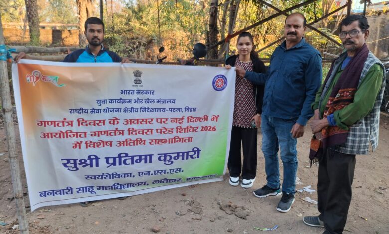 लातेहार। गणतंत्र दिवस समारोह, नई दिल्ली में आयोजित परेड कार्यक्रम में बनवारी साहूू महाविद्यालय की राष्‍ट्रीय सेवा योजना (एनएसएस)की स्‍वयंसेवक प्रतिमा कुमारी का चयन किया गया था. प्रतिमा गणतंत्र दिवस परेड नई दिल्‍ली में साक्षी (विशेष अतिथि) के रूप में आमंत्रित किया गया है. प्रतिमा कुमारी और उनके पिता ददन प्रसाद गुरूवार को नई दिल्‍ली रवाना हुए.  इस अवसर पर कार्यक्रम पदाधिकारी नवल किशोर प्रसाद एवं आयुष चौधरी ने उन्‍हें अपनी शुभकामनाएं देते हुए कार्यक्रम के लिए रवाना किया. महाविद्यालय के प्राचार्य पीके तिवारी व सचिव अंजू गुप्‍ता ने भी प्रतिमा को अपनी शुभकामनायें दी है और कहा कि यह महाविद्यालय के लिए गौरव की बात है. एनएसएस के कार्यक्रम पदाधिकारी नवल किशोर प्रसाद ने बताया कि पूरे देश से एनएसएस के कुल 100 स्‍वयंसेवकों का चयन गणतंत्र दिवस परेड नई दिल्‍ली में विशेष अतिथि के रूप में की गयी है. उसमें प्रतिमा भी एक है.