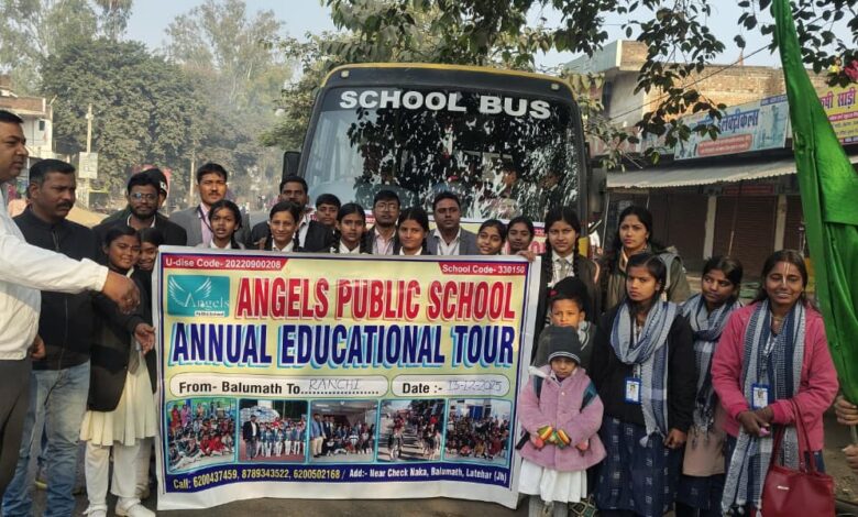 बालूमाथ (लातेहार)। एंजेल्स पब्लिक स्कूल के तत्वावधान में विद्यार्थियों के लिए वार्षिक शैक्षणिक भ्रमण का आयोजन किया गया. इस अवसर पर विद्यालय के छात्र-छात्राओं को सुरक्षित वाहनों के माध्यम से रांची के लिए रवाना किया गया. विद्यालय प्रबंधन द्वारा भ्रमण कार्यक्रम के अंतर्गत बिरसा जैविक उद्यान, मछली घर, साइंस सिटी, तारामंडल एवं पतरातू वैली सहित अन्य शैक्षणिक व दर्शनीय स्थलों का भ्रमण कराया जाना है. इस भ्रमण का उद्देश्य विद्यार्थियों को पुस्तकीय ज्ञान के साथ-साथ व्यवहारिक एवं वैज्ञानिक जानकारी प्रदान करना है.