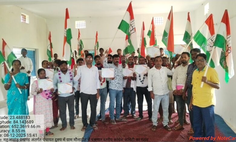 महुआडांड़(लातेहार)। प्रखंड के दुरुप पंचायत के ग्राम मौनाडीह में मंगलवार को कांग्रेस का पंचायत स्तरीय संगठन सृजन मंथन कार्यक्रम आयोजित किया गया. कार्यक्रम की अध्यक्षता महुआडांड़ कांग्रेस प्रखंंड अध्यक्ष अभय मिंज ने की. इस दौरान पंचायत अध्यक्ष समेत पंचायत कमिटी का विस्तार किया गया और नवनियुक्त पदाधिकारियों को नियुक्ति पत्र प्रदान किए गए. कांग्रेस पंचायत अध्यक्ष के रूप में तिंतियुस टोप्पो, उपाध्यक्ष कमील बृजिया सहित अन्य पदाधिकारी का चयन किया गया.