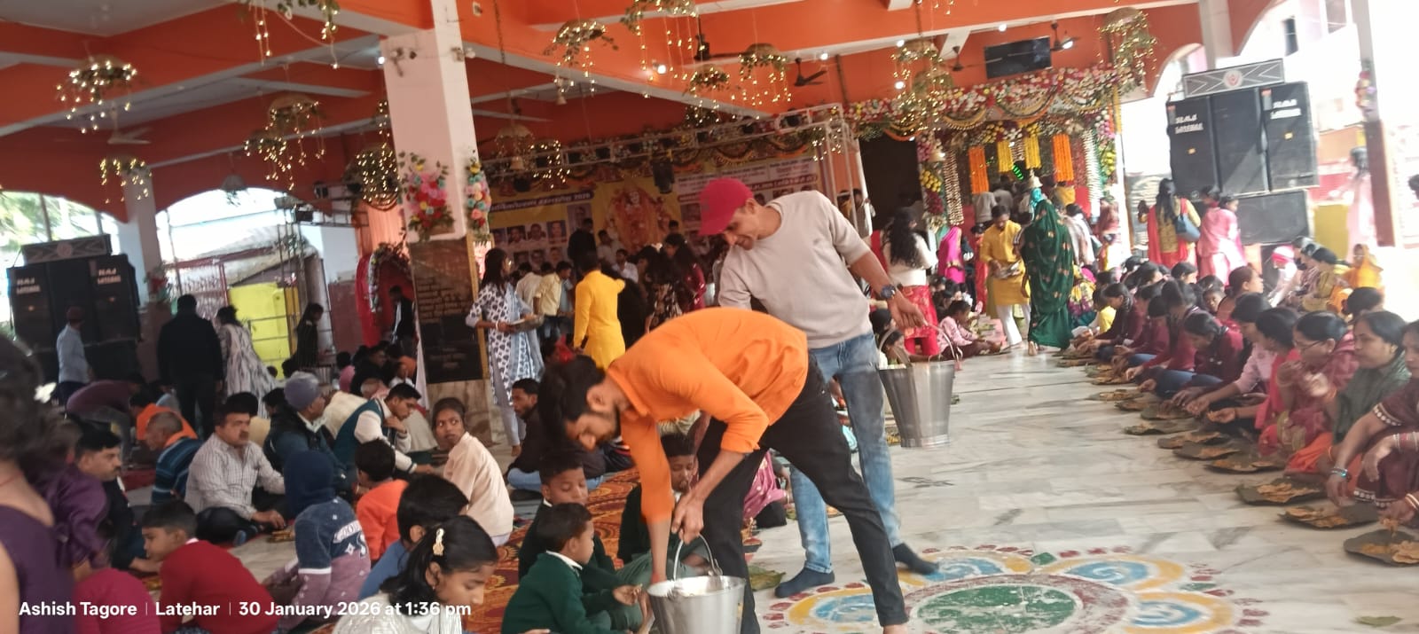भंडारा शुरू होने के बाद श्रद्धालुओं का तांता लग गया. मंदिर समिति के सदस्य पूरी तन्यमता से लोगों को प्रसाद ग्रहण करा रहे थे. महिला व पुरूष अलग अलग पात में बैठ कर प्रसाद ग्रहण कर रहे थे. बता दें कि 32 वें वार्षिकोत्सव के तीन दिवसीय कार्यक्रम के अंतिम दिन 30 जनवरी को भंडारा का आयोजन किया गया. मौके पर मंदिर समिति के संरक्षक महेंद्र प्रसाद गुप्ता, अभिनंदन प्रसाद, विनोद कुमार साहू, सुशील कुमार अग्रवाल, सुरेंद्र प्रसाद शौंडिक, अर्जुन दास, संजीव कुमार, बिनेश्वर प्रसाद, अध्यक्ष राजेश कुमार गुप्ता (भोला), उपाध्यक्ष कन्हाई प्रसाद अग्रवाल, शशिभूषण पांडेय व बद्री प्रसाद, सचिव आशीष टैगोर, सह सचिव रंजीत कुमार व रविंद प्रजापति, कोषाध्यक्ष राजू रंजन सिंह, राकेश दुबे, राजीव कुमार, ओम प्रकाश प्रसाद (राजू प्रसाद), उज्जवल साहू, विजय प्रसाद, मुकेश पांडेय, राजेंद्र विश्वकर्मा, राजू प्रसाद, पंकज प्रसाद, आकाश जायसवाल, प्रदीप प्रसाद, पारितोष ठाकुर आदि सक्रिय थे.