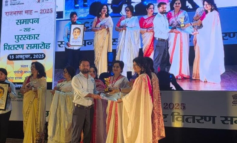 बालूमाथ (लातेहार)। सेंट्रल कोलफील्ड्स लिमिटेड द्वारा राजभाषा माह-2025 का समापन समारोह सह-पुरस्कार वितरण कार्यक्रम सीसीएल मुख्यालय, राँची में सफलतापूर्वक संपन्न हुआ. समारोह में राजभाषा माह -2025 के दौरान सीसीएल के कार्मिकों के मध्य आयोजित विभिन्न प्रतियोगिताओं के विजयी प्रतिभागियों को पुरस्कृत किया गया. इसी क्रम में मगध-संघमित्रा क्षेत्र के महाप्रबंधक कार्यालय में सामान्य सहायक के पद पर कार्यरत दीपक कुमार को रंगोत्सव – हिंदी के रंग जैसी चित्रकला प्रतियोगिता में तृतीय पुरस्कार प्राप्त हुआ. सीसीएल की अर्पिता महिला मंडल की सदस्यों द्वारा ट्रॉफी एवं प्रमाणपत्र प्रदान कर दीपक कुमार को सम्मानित किया गया.