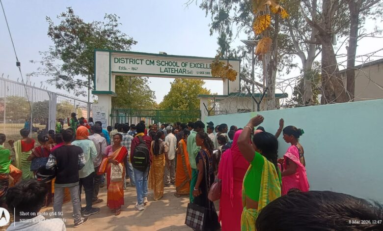 एसओई, लातेहार स्कूल में परीक्षार्थी और अभिभावकों की भीड़