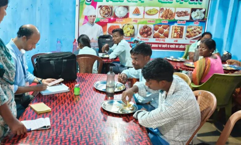 लातेहार। उपायुक्त उत्कर्ष गुप्ता के निर्देश पर गुरूवार को महुआडांड़  अनुमंडल मुख्यालय में खाद्य सुरक्षा पदाधिकारी डॉ मोईन अख्तर के नेतृत्व में स्वच्छता एवं खाद्य सुरक्षा सुनिश्चित करने हेतु विशेष निरीक्षण एवं छापेमारी अभियान चलाया गया.  इस दौरान बाजार बिक रहे खाद्य पदार्थों विशेषकर मिठाईयों की गुणवत्ता, शुद्धता तथा दुकानों में स्वच्छता की स्थिति की जांच की गयी. खाद्य सुरक्षा टीम ने होटल स्वीट्स पैलेस,  आशीष मार्ट,  पूनम मिष्ठान, विष्णु भोजनालय, मां भोजनालय और गुप्ता स्वीट्स इत्यादि का औचक निरीक्षण किया. इस क्रम में दुकानों में रखे गये खाद्य पदार्थ की स्थिति, लाईसेंस, भण्डारण की तिथि एवं कार्य स्थल की साफ-सफाई की स्थिति की जांच की गई.  निरीक्षण के क्रम मे मेसर्स अरूण किराना स्टोर से एक्सपायरी आटा पाया गया. लगभग 25 पैकेट आटा को नष्ट किया गया. दुकान संचालक को दोबारा इस प्रकार की गलती नहीं करने तथा फूड लाइसेंस ले कर ही दुकान संचालन करने का सख्त निदेश दिया गया. मेसर्स आशीष मार्ट के गोदाम में एक्सपायरी चिप्स तथा बिना निर्माण तिथि बैच नंबर के एक्सपायरी डेट अंकित किये हुए कुरकुरे व नमकीन का भंडारण करते हुए पाया गया. प्रतिष्ठान पर खाद्य सुरक्षा अधिनियम के तहत् पाच हजार रूपये का अर्थदण्ड लगाया गया. मौके पर परामर्शी नागेन्द्र कुमार तथा खाद्य सुरक्षा सहायक कर्मी रजनीश कुमार एवं शहनाज खातून  मौजूद थे.