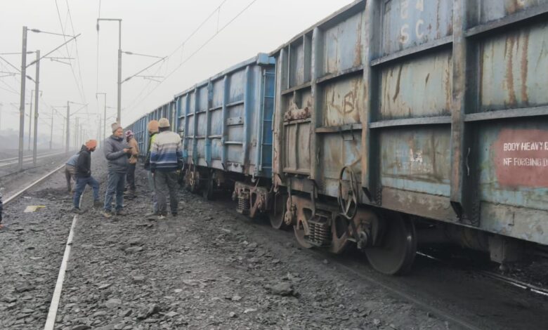 बालूमाथ (लातेहार)। धनबाद रेल मंडल के अंतर्गत टोरी-शिवपुर रेलवे लाइन स्थित बालूमाथ रेलवे स्टेशन के समीप सोमवार को बड़ा रेल हादसा टल गया. बीसीबीएम रेलवे कोयला साइडिंग पर एक मालगाड़ी अचानक पटरी से उतर गई. इस घटना में मालगाड़ी की दो बोगियां चार नंबर पटरी से नीचे उतर गईं. जिससे इस लाइन पर रेल आवागमन पूरी तरह ठप हो गया. हालांकि राहत की बात यह रही कि हादसे में किसी प्रकार की जान-माल की क्षति नहीं हुई. घटना के बाद क्षेत्र में अफरातफरी का माहौल बन गया और रेलवे सुरक्षा व्यवस्था को लेकर सवाल उठने लगे.