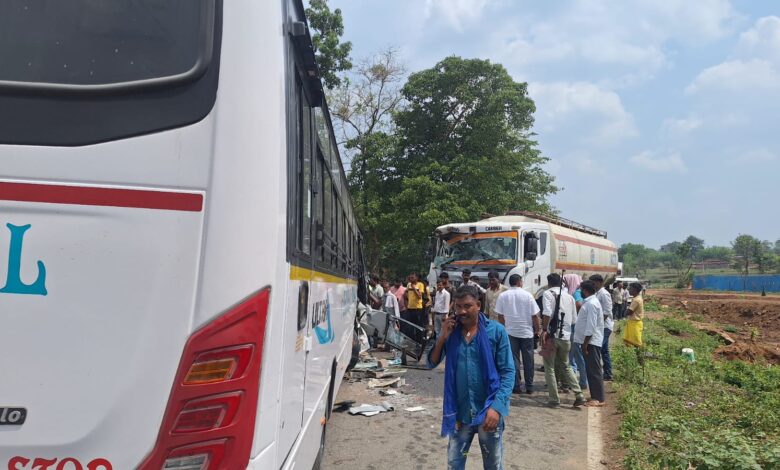 बस और टैंकर की टक्‍कर में चालक समेंत आधा दर्जन यात्री घायल