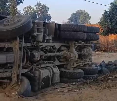 हाइवा दुर्घटनाग्रस्‍त, लदा था पत्‍थर