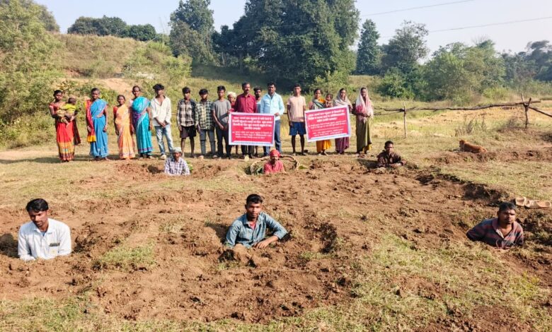शरीर के आधे हिस्‍से को जमीन में दफन कर बैठे रहे किसान
