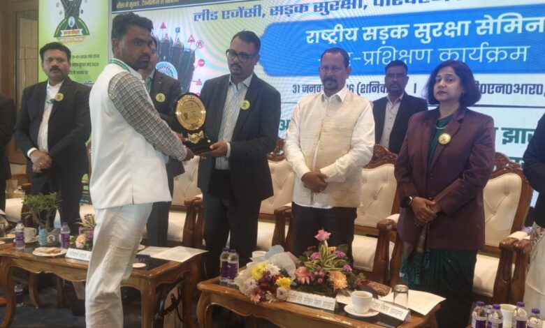 लातेहार। राष्ट्रीय सड़क सुरक्षा माह 2026 के आखिरी दिन शनिवार को परिवहन विभाग झारखंंड सरकार के द्वारा 31 जनवरी को चाणक्य बीएनआर होटल रांची में एक दिवसीय राष्ट्रीय सड़क सुरक्षा सेमिनार सह प्रशिक्षण कार्यक्रम का आयोजन किया गया. इस अवसर पर झारखंंड राज्य के विभिन्न जिलों के द्वारा राष्ट्रीय सड़क सुरक्षा माह 2026 के सफल कार्यक्रम में परिवहन मंत्री दीपक बेरुआ, सचिव, परिवहन विभाग बिप्रा भाल, परिवहन आयुक्त संजीव कुमार बेसरा, संयुक्त परिवहन आयुक्त (सड़क सुरक्षा) परिवहन विभाग रांची एवं अन्य पदाधिकारी मौजूद थे. कार्यक्रम में लातेहार जिले को गुड सेमेरिटन पॉलिसी के तहत राहवीर के तौर पर अख्तर अंसारी को कई दुर्घटनाओं में घायल व्यक्ति को गोल्डेन ऑवर में नजदीकी अस्पताल पहुंचाने का उत्कृष्ट कार्य हेतु सम्मानित किया गया.  इन्होंने पिछले कई वर्षों से बहुतों सड़क दुर्घटना में घायल व्यक्ति को अस्पताल पहुंचाने का कार्य किया गया हैं.  इस नेक कार्य हेतु श्री अख्तर अंसारी को इस सेमिनार में मंत्री श्री बेरूआ के द्वारा सम्मानित किया गया.