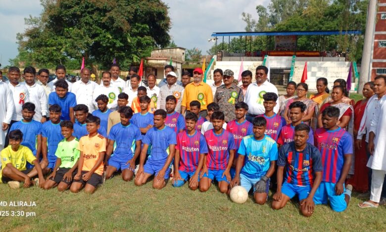 महुआडांड़ ( लातेहार)। शुक्रवार को आवासीय विद्यालय स्टेडियम में फुटबॉल टूर्नामेंट का शुभारंभ किया गया. इसका उदघाटन बतौर मुख्य अतिथि विधायक रामचंद्र सिंह ने फीता काटकर किया. इस अवसर पर विशिष्ट अतिथि के रूप में अनुमंडल पदाधिकारी बिपिन कुमार दुबे, अनुमंडल पुलिस पदाधिकारी शिवपूजन बहेलिया, प्रखंड विकास पदाधिकारी संतोष बैठा, फादर दिलीप एवं प्रदेश प्रतिनिधि इफ्तेखार अहमद सहित अन्य जनप्रतिनिधि एवं गणमान्य व्यक्ति मौजूद थे. मुख्य अतिथि विधायक रामचंद्र सिंह ने उपस्थित लोगों को संबोधित करते हुए कहा कि खेल हमारे जीवन का अभिन्न हिस्सा है. हमें खेलों में भाग लेना चाहिए. खेलों में हार जीत लगी रहती है, सबसे बड़ी बात खेलों में भाग लेना है. उन्‍होने कहा कि खेलों के माध्यम से इस क्षेत्र से दो- दो आईपीएस बने हैं. खेल से आपसी भाईचारा और सद्भावना बढ़ाती है,  युवाओं  को अनुशासन और स्वस्थ रहने की प्रेरणा देती है. कार्यक्रम का आयोजन कांग्रेस प्रखंड अध्यक्ष अभय मिंज एवं युवा प्रखंड अध्यक्ष अमीर सुहेल के संयुक्त तत्वावधान में किया जा रहा है. टूर्नामेंट के शुभारंभ मौके पर बड़ी संख्या में खेल प्रेमी और ग्रामीण उपस्थित हुए. इस दौरान विधायक एवं पदाधिकारी, मुखिया ,कांग्रेस कार्यकर्ताओं ने खिलाड़ियों से परिचय प्राप्त किया. विधायक के द्वारा फुटबॉल को किक मारकर मैच का शुरुआत किया गया. मैच का टॉस महुआडांड़ टीम ने जीता. मौके पर मुखिया प्रमिला मिंज, ऊषा खलखो, अमृता देवी, रोशनी कुजूर, सुषमा कुजूर, कमला किंडो,कांग्रेस मंडल अध्यक्ष नूरूल हसन, जमुना प्रसाद, रामनरेश ठाकुर, रानू खान, नसीम अंसारी, ग्लेडविन कुजूर, कोमल किंडो ,शहीद अख्तर, सद्दाम खान, सकील अहमद सहित सैकड़ों खेल प्रेमी और कांग्रेस कार्यकता उपस्थित थे.