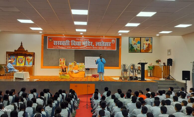 लातेहार। गुरू पूर्णिमा के अवसर पर गुरूवार को शहर के धर्मपुर पथ पर अवस्थित सरस्वती विद्या मंदिर में वेदव्यास जयंती सह गुरु पूर्णिमा उत्सव मनाया गया. विद्यालय के वंदना सभागार में आयोजित इस कार्यक्रम का शुभारंभ प्रधानाचार्य उत्तम कुमार मुखर्जी एवं जयंती प्रमुख फूलचंद सिंह के द्वारा संयुक्त रूप से महर्षि वेदव्यास के चित्र के समक्ष दीप प्रज्वलन एवं आरती कर किया गया. मौके पर विद्यालय के छात्र व छात्राओं के द्वारा महर्षि व्यास की जीवनी पर प्रकाश डाला गया.
