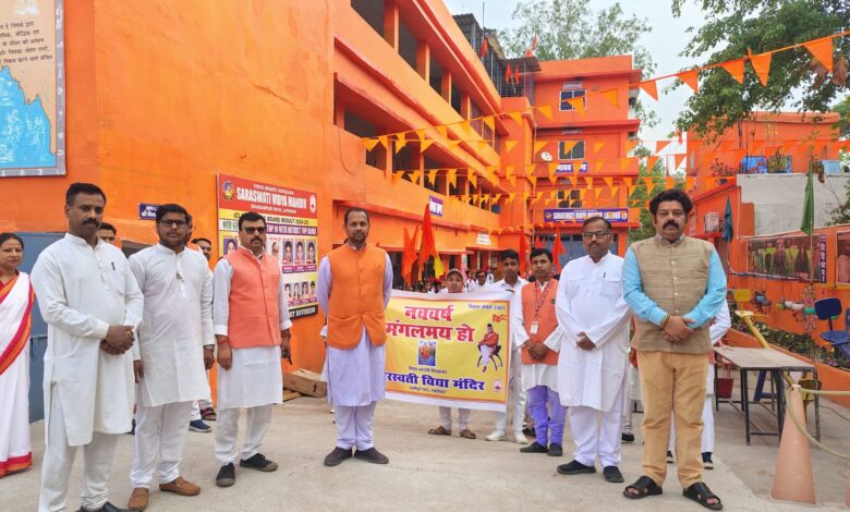 लातेहार। चैत्र शुक्ल प्रतिपदा के अवसर पर सरस्वती विद्या मंदिर, धर्मपुर पथ लातेहार के के द्वारा 19 मार्च को घोष दल के साथ पथ संचलन निकाला गया. इस अवसर पर विद्यालय प्रबन्ध कारिणी समिति के सचिव राजीव रंजन पांडेय ने विद्यालय के छात्र और छात्राओं और आचार्य तथा कर्मचारी गण को शुभकामना संदेश दी. विद्यालय के प्रधानाचार्य उत्तम कुमार मुखर्जी ने भी विक्रम संवत 2083 के आगमन पर शुभकामनाएं संदेश दी. पथ संचलन विद्यालय से निकलकर मेन रोड होते हुए थाना चौक होकर विद्यालय के प्रांगण में संपन्न हुआ. घोष दल का नेतृत्व विद्यालय के आचार्य सलमान होजाईसा के द्वारा किया गया. हिंदू नव वर्ष के अवसर पर कक्षा षष्ठ से नवम तक के बहनों ने शुभकामना पत्र तैयार किए.