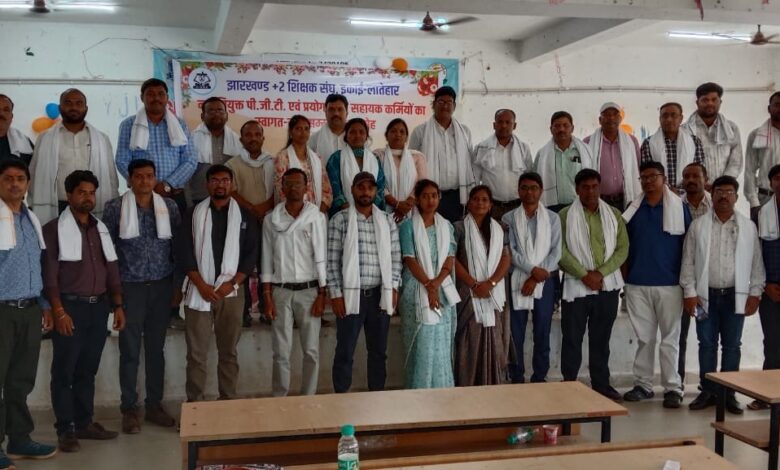 लातेहार। जिला मुख्यमंत्री उत्कृष्ट विद्यालय, लातेहार के सभागार में शनिवार को नव नियुक्त पीजीटी एवं प्रयोगशाला सहायक कर्मियों का स्वागत सह सम्मान समारोह का आयोजन किया गया. इसका आयोजन प्लस टू शिक्षक संघ, लातेहार जिला इकाई के द्वारा किया गया. कार्यक्रम में सभी नव नियुक्त पीजीटी एवं प्रयोगशाला सहायक कर्मियों को अंग वस्त्र भेंट कर सम्मानित किया गया. कार्यक्रम में शिक्षकों से संबंधित विभिन्न मुद्दों यथा वेतन विसंगति, वरीय वेतनमान, सेवा संपुष्टि इत्यादि विषयों पर विस्तृत विचार विमर्श किया गया.