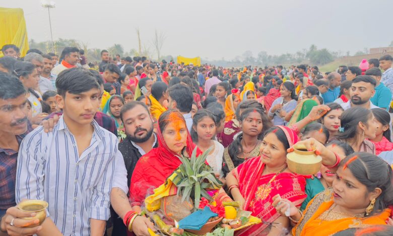 चैती छठ पर अस्ताचलगामी सूर्य को अर्घ्य अर्पित किया