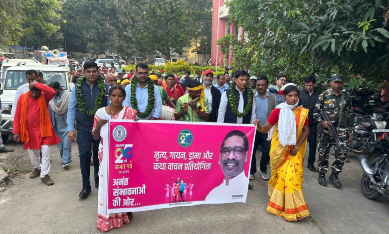 लातेहार। झारखंड राज्य स्थापना के 25 वर्ष पूर्ण होने के उपलक्ष्य में बुधवार को सुबह ए झारखंड कार्यक्रम के तहत स्ट्रीट डांस (पारंपरिक नृत्य) का आयोजन किया गया. इस अवसर पर समाहरणालय परिसर से बाईपास चौक तक पारंपरिक नृत्य का भव्य आयोजन किया गया. उपायुक्त उत्कर्ष गुप्ता की उपस्थिति में पारंपरिक नृत्य दलों द्वारा झारखंड की लोकसंस्कृति और लोक परंपरा को दर्शाते हुए शानदार प्रस्तुति दी गई.