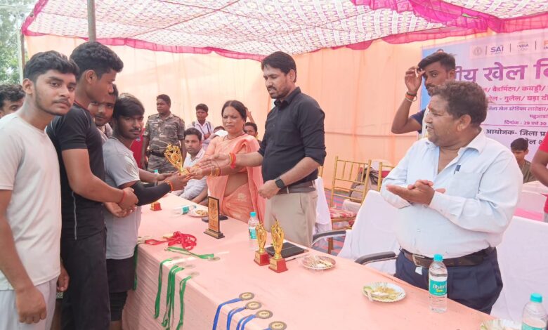 लातेहार। जिला प्रशासन लातेहार, खेल शाखा के तत्वावधान में राष्ट्रीय खेल दिवस के अवसर पर आयोजित प्रतियोगिताओं का समापन शनिवार को किया गया. प्रतियोगिता के दूसरे दिन कई पारंपरिक और जनजातीय खेलों का आयोजन किया गया. मौके पर बतौर मुख्‍य अतिथि जिला परिषद अध्‍यक्ष पूनम देवी ने कहा कि वर्तमान परिवेश में बच्‍चे मोबाइल में गेम खेलने में जहां व्यस्त रहते हैं, वहीं जिला खेल शाखा द्वारा विलुप्त होती जनजातीय खेल प्रतियोगिताओं का आयोजन और इन प्रतियोगिताओं में खिलाड़ियों का भाग लेना बहुत बड़ी बात है.
