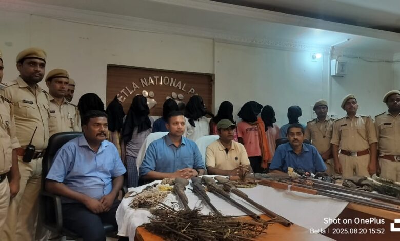 लातेहार। बेतला टाइगर रिज़र्व (पीटीआर) में सक्रिय एक शिकारियों के गिरोह का भंडाभोड़ हुआ है. वन विभाग की छापामारी टीम ने पीटीआर से शिकारी गिरोह के नौ सदस्यों को गिरफ्तार किया है. जबकि शेष 13 फरार हैं. बेतला में आयोजित प्रेस वार्ता में पीटीआर के उप निदेशक प्रजेश जैन ने बुधवार को बताया कि 19 अगस्त को नावागढ़ निवासी सरफुदीन मियां को बारूद एवं गंधक बेचते गिरफ्तार किया गया था. उससे जब सख्ती से पूछताछ की गयी तो उसने खुलासा किया कि वह भरठुआ बंदूक में इस्तेमाल के लिए इन सामग्रियो को शिकारियों को बेचता था. उसने गारू थाना क्षेत्र कुई ग्राम निवासी तपेश्वर सिंह को बारूद देने की बात स्वीकार की. इसके बाद 20 अगस्त को तड़के सुबह करीब तीन बजे कुई गांव में छापेमारी की गयी. छापामारी में तपेश्वर सिंह को गिरफ्तार किया गया. उसके घर से एक भरठुआ बंदूक बरामद किया गया. उसने कबूल किया कि वह एक गिरोह के साथ मिलकर पलामू टाइगर रिजर्व के जंगलों में वर्षों से शिकार कर रहा है.