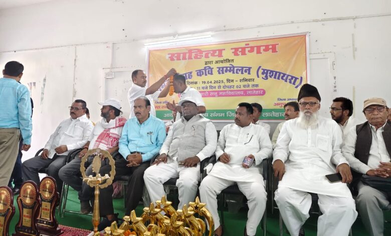 लातेहार। साहित्य संगम के तत्वावधान में शनिवार को स्थानीय बनवारी साहु महाविद्यालय के सभागार में कवि सम्मेलन एवं साहित्यिक संगोष्ठी का आयोजन किया गया. इस कार्यक्रम में जिले भर से कई प्रतिष्ठित एवं नवोदित कवियों ने भाग लिया. यह आयोजन साहित्यिक चेतना को बढ़ावा देने और समाज में संवाद एवं सौहार्द को मजबूत करने की दिशा में एक उल्लेखनीय पहल के रूप में देखा गया.