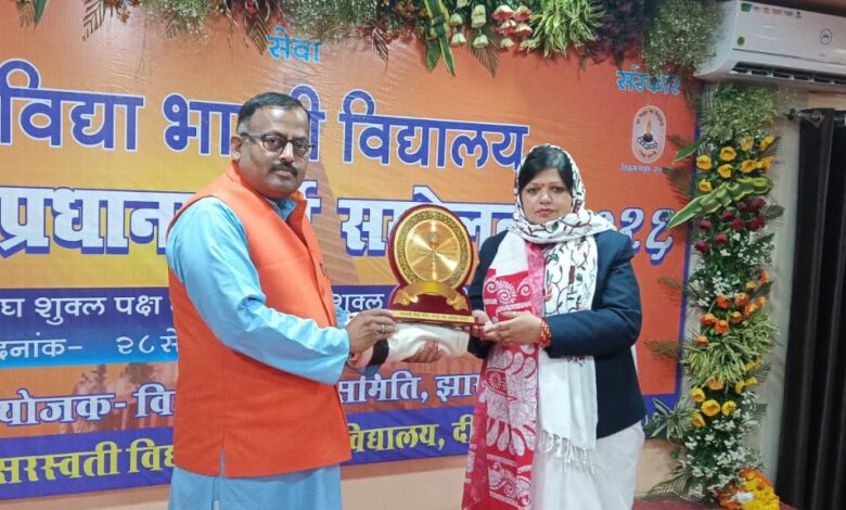 शत प्रतिशत परीक्षा परिणाम के लिए सरस्वती विद्या मंदिर, लातेहार व प्रधानाचार्य सम्मानित