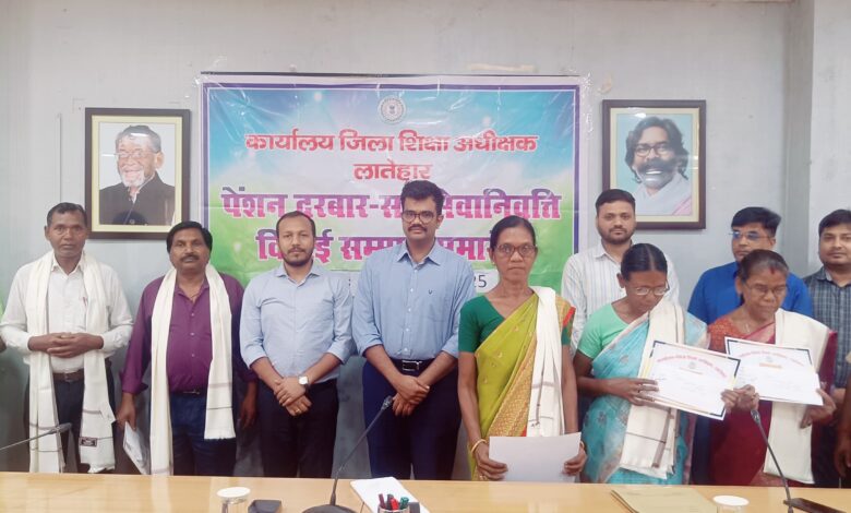 लातेहार। उपायुक्त उत्कर्ष गुप्ता की अध्यक्षता में समाहरणालय सभागार में पेंशन दरबार-सह-सेवा निवृति विदाई सम्मान समारोह का आयोजन किया गया. जिला शिक्षा अधीक्षक कार्यालय के अधीन अप्रैल 2025 में सेवानिवृत होने वाले सात शिक्षकों को उपायुक्त ने सेवानिवृत के बाद मोमेंटो व शाल भेंट कर सम्मानित किया. इस अवसर पर उपायुक्त ने सभी सेवानिवृत शिक्षक व शिक्षिकाओं को सेवानिवृत्ति के बाद उनके बेहतर स्वस्थ एवं खुशहाल जीवन की कामना की. कहा कि शिक्षक कभी रिटायर नहीं होते हैं, अपने मार्गदर्शन से समाज को लाभ देते हैं. जिला शिक्षा अधीक्षक गौतम कुमार साहू ने बताया कि सेवानिवृत्त शिक्षकों को उनके सेवानिवृत्ति के दिन ही सभी सेवानिवृत्ति पावना (सेवानिवृत्ति लाभ) का भुगतान किया गया.