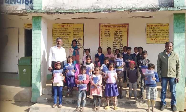 लातेहार। जिले के चंदवा प्रखंड के उत्क्रमित प्राथमिक विद्यालय, बेलवाही में छात्रों के बीच जूता, मौजा व स्वेटर आदि का वितरण किया गया. पंचायत समिति सदस्य अयुब खान व मुखिया नरेश भगत ने संयुक्त रूप से इसका वितरण किया.