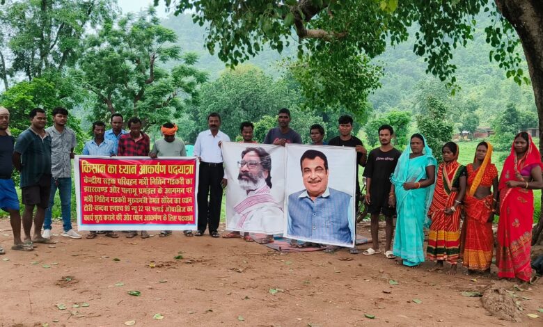 लातेहार। जिले के टोरी रेलवे क्रासिंग में कई वर्षों से फ्लाई ओवरब्रिज निर्माण की मांग की जा रही है. चार साल पहले केंद्रीय परिवहन मंत्री व मुख्यमंत्री हेमंत सोरेन ने टोरी रेलवे क्रासिंग में फ्लाई ओवरब्रिज निर्माण के लिए ऑनलाइन शिलान्यास भी शुरू किया था. लेकिन आज तक निर्माण कार्य शुरू नहीं हुआ. इसे ले कर चंदवा-टोरी के किसान विगत काफी दिनों से आंदोलनरत हैं. पिछले दिनों जमीन व जल समाधि सत्याग्रह किया था. अब किसानों ने बुधवार से दो दिवसीय ध्यान आकर्षण पदयात्रा शुरू की है. किसान परिवहन मंत्री नीतिन गडकरी व मुख्यमंत्री हेमंत सोरेन का फोटो लेकर गांव- गांव घुम रहे हैं.
