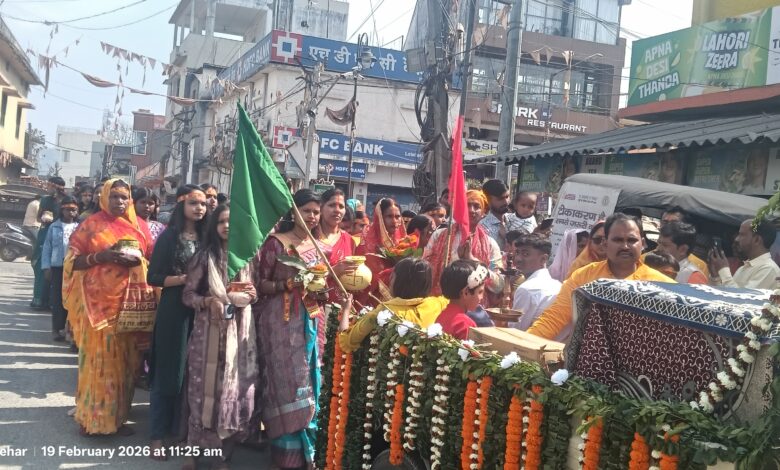यहां कलशों की स्थापना कर वेदी पूजन और पाठ प्रारंभ गया. कलश में शामिल महिला और कुंवारी कन्याओ मे काफी उत्साीह देखा गया. लोग जय माता दी का जयघोष कर रहे थे. मंदिर समिति के अध्यक्ष निर्मल महलका व सक्रिय सदस्य सागर कुमार ने बताया कि 20 फरवरी को नौ कन्या पूजन के बाद अपराह्न 12 बजे से भंडारा (महाप्रसाद) का वितरण किया जायेगा. उन्होने इस मौके पर सपरिवार भाग लेने एवं माता का प्रसाद ग्रहण करने की अपील की. कलश यात्रा में ध्रुप प्रसाद, दीपक अग्रवाल, कृष्ण गुप्ता, संजय ठाकुर, रमेश ठाकुर, राजेश अग्रवाल, नीतिन कुमार, दिलीप ठाकुर, अरिवंद ठाकुर, पंकज ठाकुर, जया कुमारी समेंत काफी संख्या में महिला और पुरुष श्रद्धालु मौजूद थे.