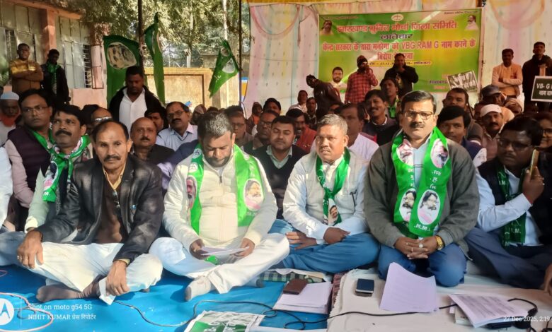 यह धरना भी मनरेगा का नाम बदलकर वीबी-जी, रामजी करने के विरोध में आयोजित किया गया था. इसकी अध्यक्षता झामुमो जिला अध्यक्ष लाल मोती नाथ शाहदेव ने किया. जिला अध्यक्ष श्री शाहदेव ने कहा कि सरकार ने सिर्फ योजना का नाम नहीं बदला बल्कि महात्मा गांधी के विचारों पर प्रश्न चिन्ह खड़ा कर दिया है. उन्होने कहा कि यह भाजपा की पुरानी मानसिकता रही है. जिला 20 सूत्री उपाध्यक्ष सह प्रदेश कार्यकारिणी सदस्य अरुण कुमार दुबे ने कहा कि नाम बदलकर महात्मा गांधी के आदर्शों को खत्म करने की साजिश भाजपा द्वारा रची जा रही है और इसे विपक्ष किसी भी कीमत पर कामयाब नहीं होने देगा.