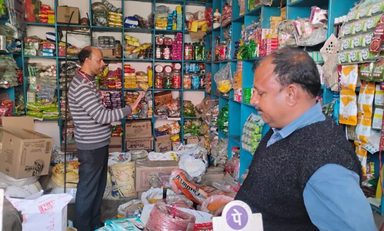शहर के मीट मुुर्गा व किराना दुकानों की जांच की गयी